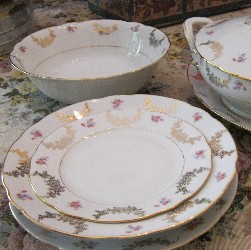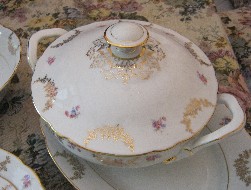 Servizio di piatti in ceramica pregiata anni '50, della famosa ditta Seltmann Weiden Bavaria, composto da 72 pezzi,dipinto a mano con rifiniture in oro.